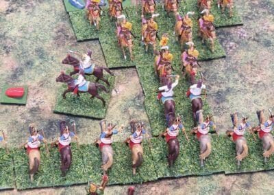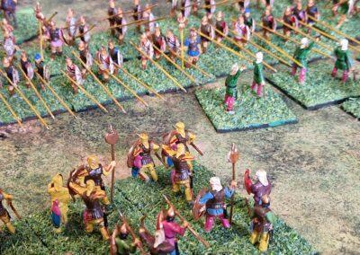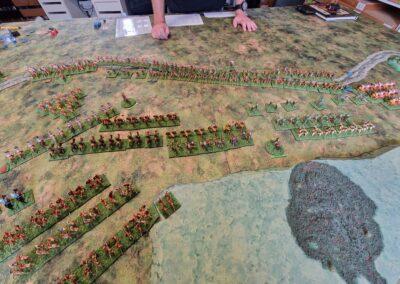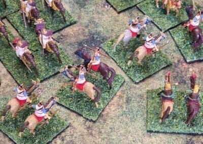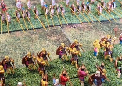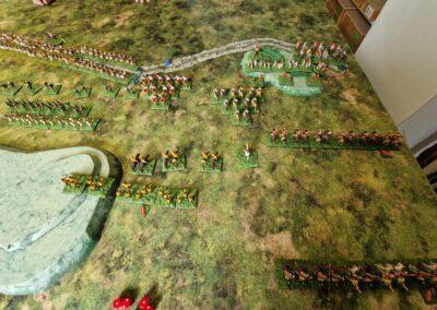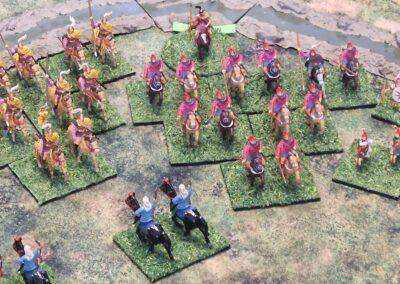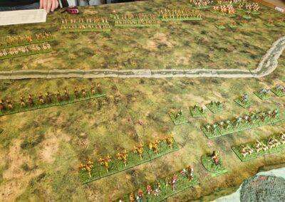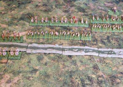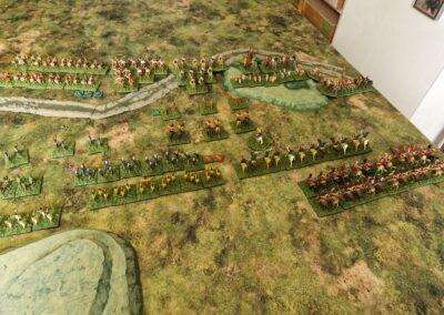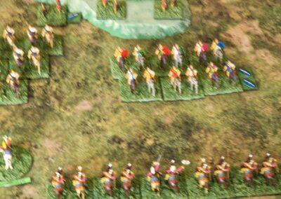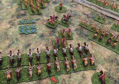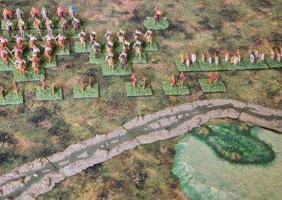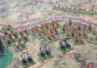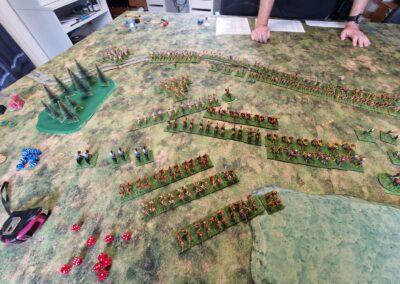 Granicus 2024 AD Alexander W. als Alexander en ikke als Perzische Griek (of Griekse Pers ???? ) Resultaat vrij historisch: Perzische linkerflank opgekuist door de Macedonische zware cavalerie. Rechterflank status quo (of toch ongeveer) Centrum onder zware druk van de falanx. En de Grieken? Die hebben mogelijks nog minder gedaan dan in het echt…